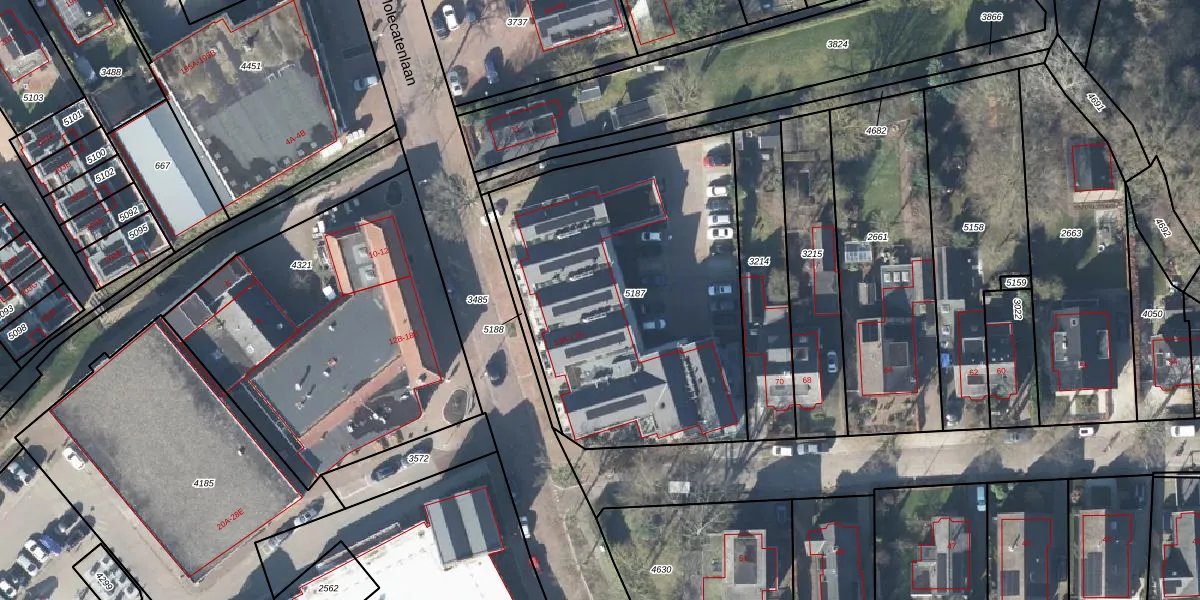 Het perceel waarop het adres ligt is APD01-V-5187. De afkorting 'APD01' staat voor kadastrale gemeente Apeldoorn. Het perceel is 1727 m² groot. Dat is kleiner dan de gemiddelde perceeloppervlakte in Apeldoorn, dat op 3532,9 m² ligt. Het grootste perceel in de kadastrale gemeente is 4,54 km². Het kleinste perceel heeft een oppervlakte van 0 m². Er zijn 20 adressen aanwezig op het perceel. De huidige grenzen van het perceel zijn digitaal in de Basisregistratie Kadaster (BRK) geregistreerd op 09-02-2024.