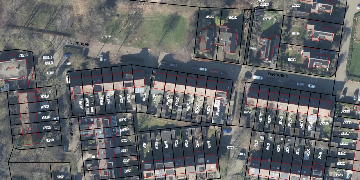 Nijenbeek 39 is gelegen op kadastraal perceel APD01L13374. Deze kadastrale aanduiding is uniek en wordt gebruikt door het Kadaster om eigendomsrechten en andere zakelijke rechten vast te leggen. Het perceel maakt onderdeel uit van de kadastrale gemeente Apeldoorn.