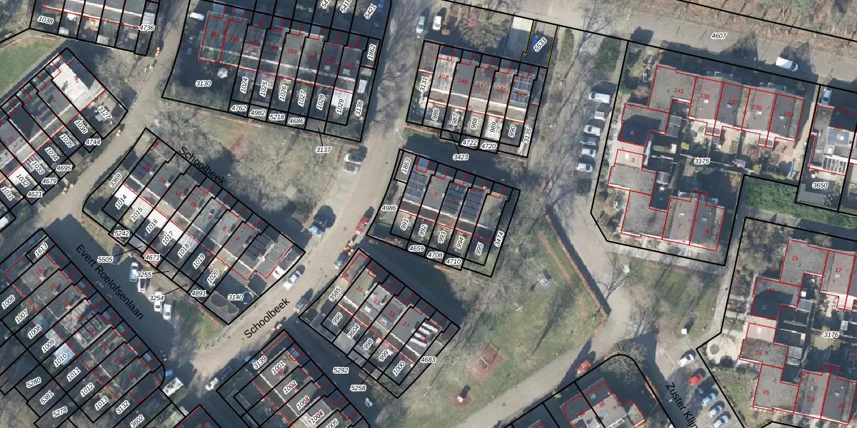 Gebruik de zoekbalk of klik op een perceel voor informatie over de adressen binnen dit perceel.