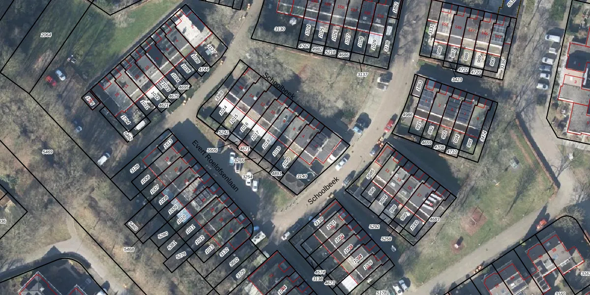Het perceel waarop Schoolbeek 4 staat heeft een oppervlakte van 97 m². Dit is een klein perceel. De perceeloppervlakte wordt geregistreerd door het Kadaster. Gedetailleerde informatie over de maten van dit perceel kunt u vinden in het rapport Kadastrale kaart met maatvoering van Schoolbeek 4.