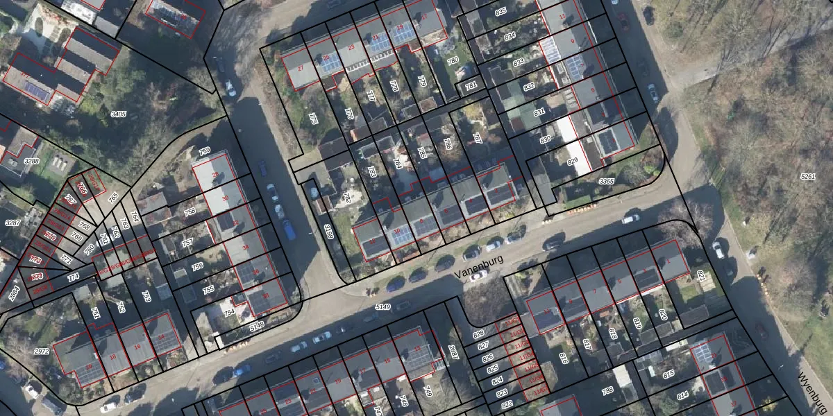 Gebruik de zoekbalk of klik op een perceel voor informatie over de adressen binnen dit perceel.