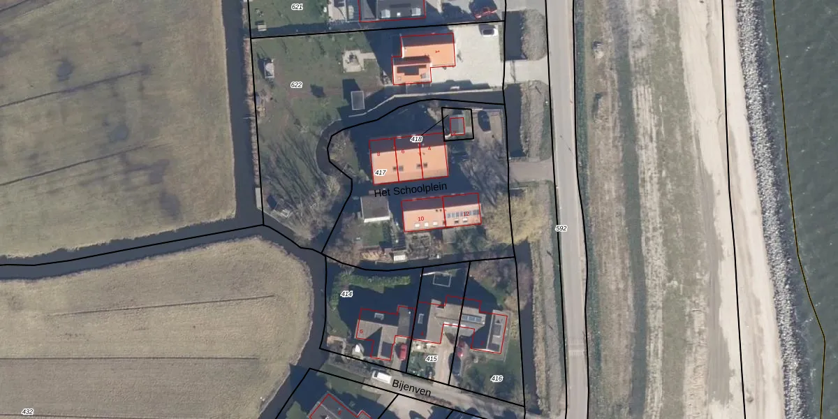 Het Schoolplein 10 is gelegen op kadastraal perceel BRO00G417. Deze kadastrale aanduiding is uniek en wordt gebruikt door het Kadaster om eigendomsrechten en andere zakelijke rechten vast te leggen. Het perceel maakt onderdeel uit van de kadastrale gemeente Broek in Waterland.