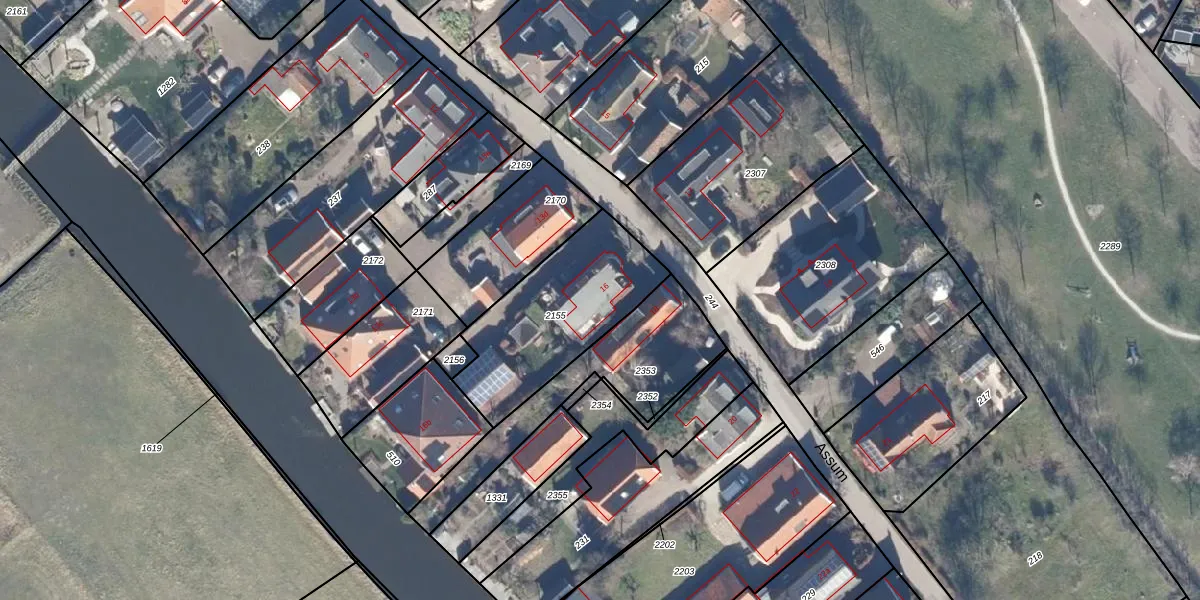 Het perceel waarop Assum 16 staat heeft een oppervlakte van 580 m². Dit is een groot perceel. De perceeloppervlakte wordt geregistreerd door het Kadaster. Gedetailleerde informatie over de maten van dit perceel kunt u vinden in het rapport Kadastrale kaart met maatvoering van Assum 16.