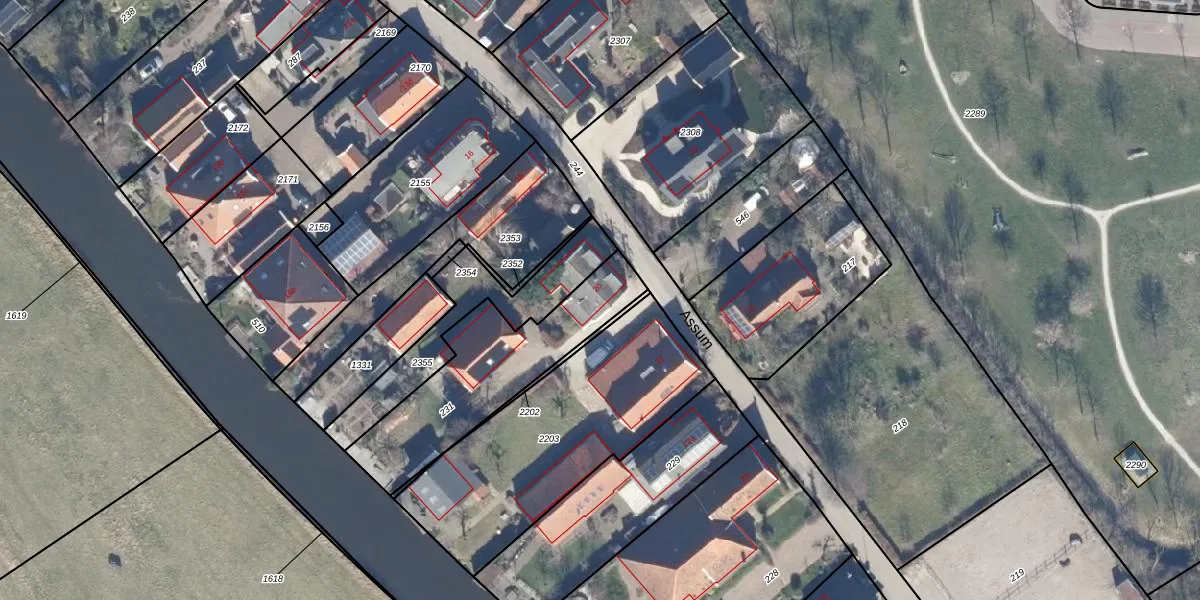 Het perceel waarop Assum 20 staat heeft een oppervlakte van 583 m². Dit is een groot perceel. De perceeloppervlakte wordt geregistreerd door het Kadaster. Gedetailleerde informatie over de maten van dit perceel kunt u vinden in het rapport Kadastrale kaart met maatvoering van Assum 20.