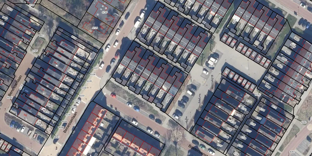 Het perceel waarop Benesserlaan 101 staat heeft een oppervlakte van 140 m². Dit is een middelgroot perceel. De perceeloppervlakte wordt geregistreerd door het Kadaster. Gedetailleerde informatie over de maten van dit perceel kunt u vinden in het rapport Kadastrale kaart met maatvoering van Benesserlaan 101.