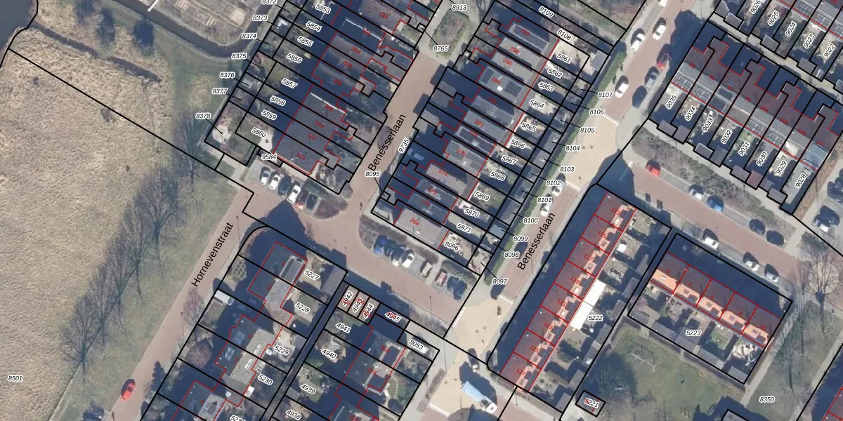 Gebruik de zoekbalk of klik op een perceel voor informatie over de adressen binnen dit perceel.