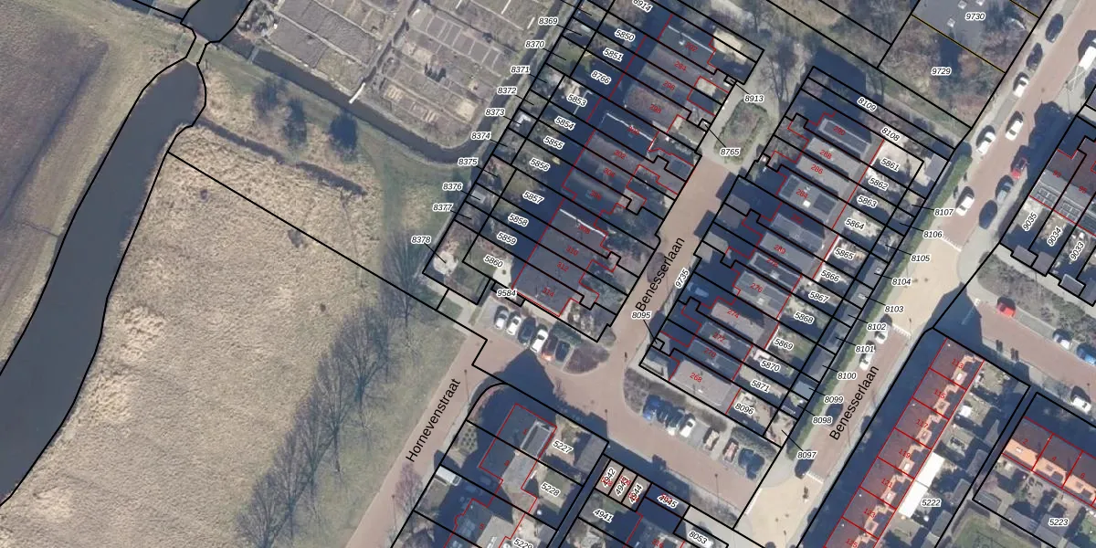 Het perceel waarop Benesserlaan 312 staat heeft een oppervlakte van 119 m². Dit is een middelgroot perceel. De perceeloppervlakte wordt geregistreerd door het Kadaster. Gedetailleerde informatie over de maten van dit perceel kunt u vinden in het rapport Kadastrale kaart met maatvoering van Benesserlaan 312.