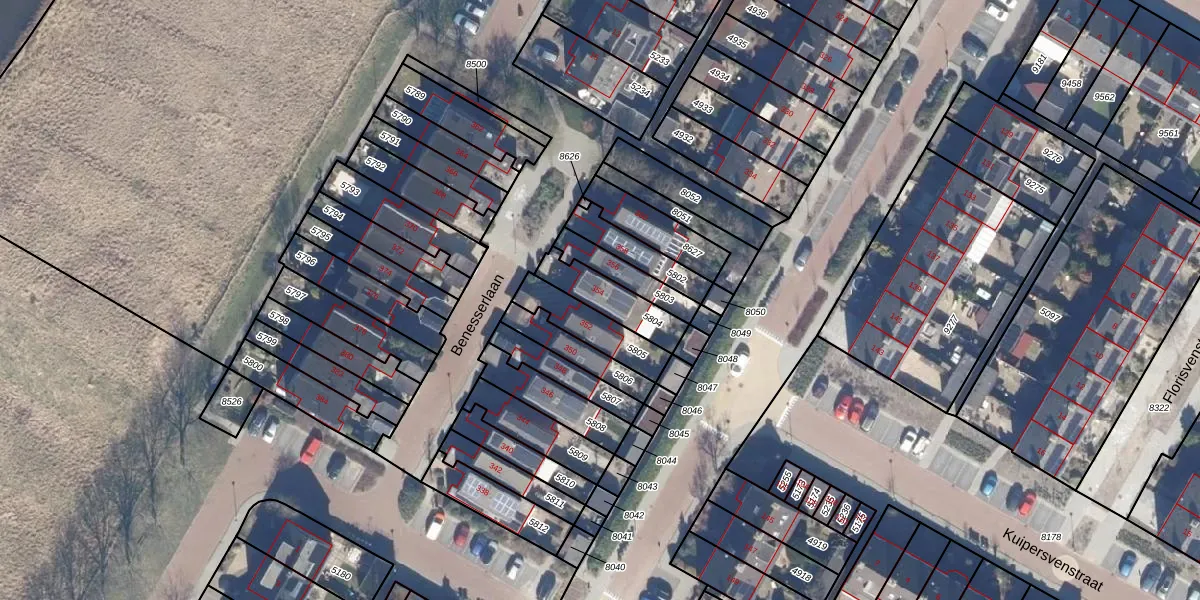 Gebruik de zoekbalk of klik op een perceel voor informatie over de adressen binnen dit perceel.