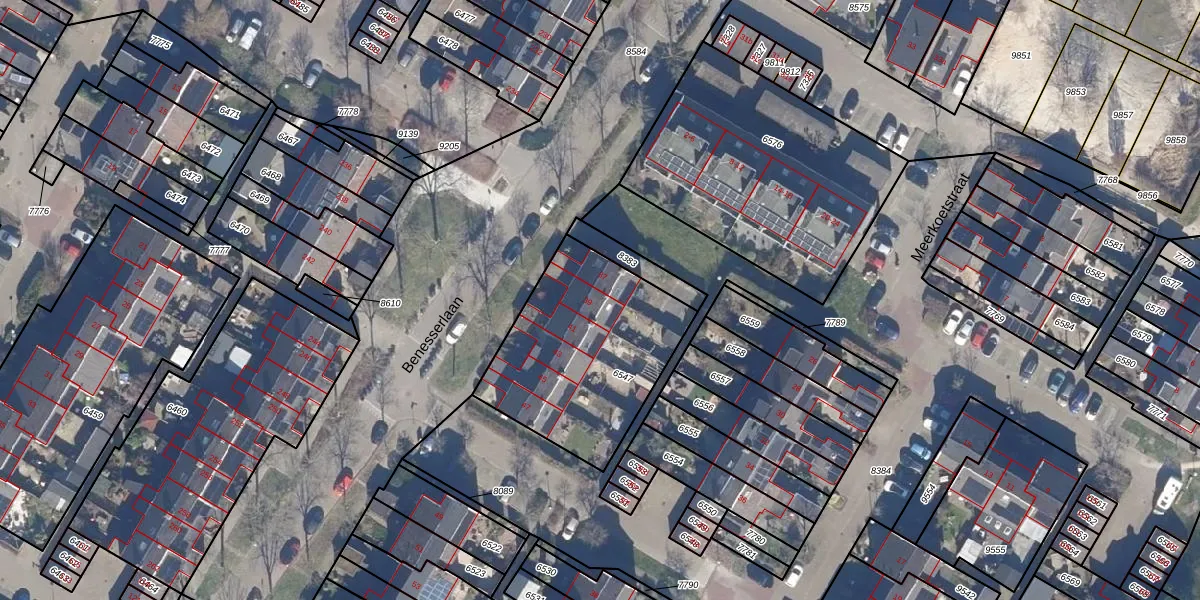 Het perceel waarop Benesserlaan 39 staat heeft een oppervlakte van 784 m². Dit is een groot perceel. De perceeloppervlakte wordt geregistreerd door het Kadaster. Gedetailleerde informatie over de maten van dit perceel kunt u vinden in het rapport Kadastrale kaart met maatvoering van Benesserlaan 39.