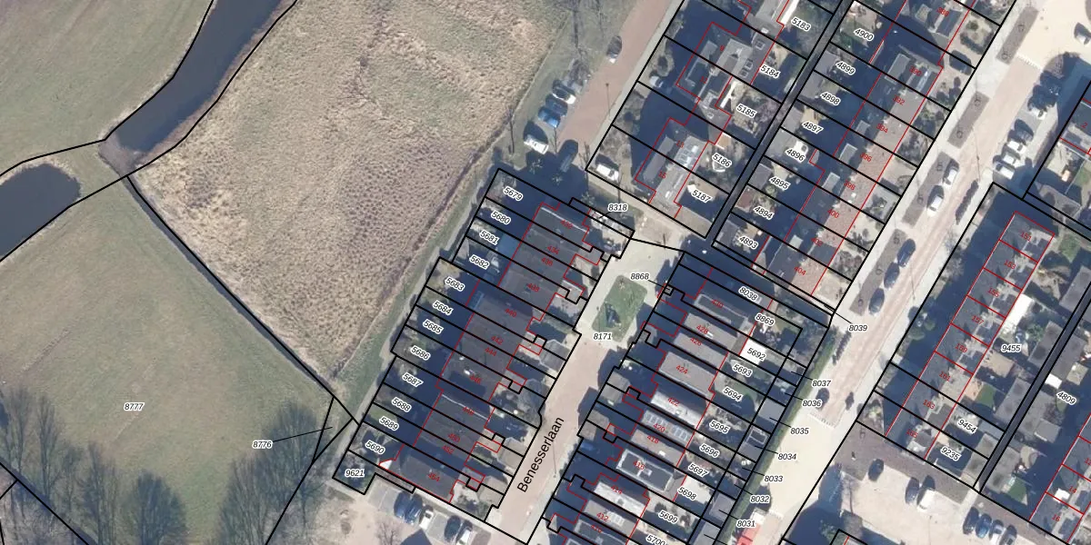 Het perceel waarop Benesserlaan 436 staat heeft een oppervlakte van 108 m². Dit is een middelgroot perceel. De perceeloppervlakte wordt geregistreerd door het Kadaster. Gedetailleerde informatie over de maten van dit perceel kunt u vinden in het rapport Kadastrale kaart met maatvoering van Benesserlaan 436.