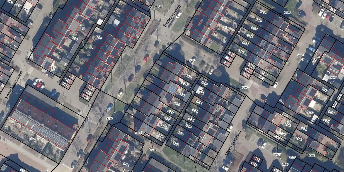Gebruik de zoekbalk of klik op een perceel voor informatie over de adressen binnen dit perceel.