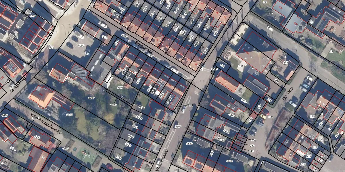 Gebruik de zoekbalk of klik op een perceel voor informatie over de adressen binnen dit perceel.