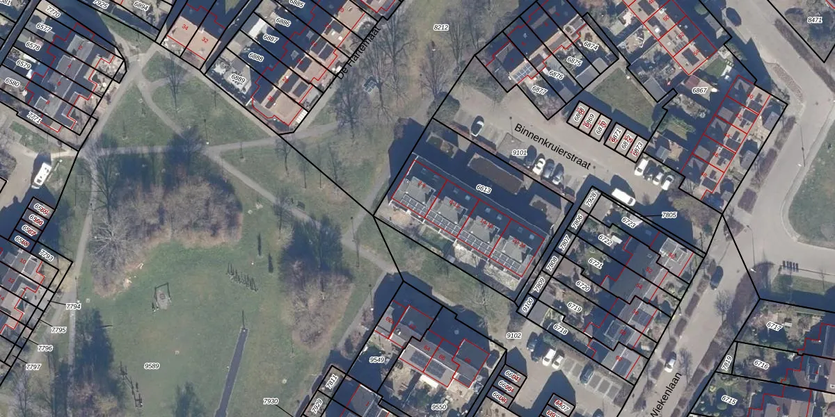 Het perceel waarop Binnenkruierstraat 6 staat heeft een oppervlakte van 1090 m². Dit is een zeer groot perceel. De perceeloppervlakte wordt geregistreerd door het Kadaster. Gedetailleerde informatie over de maten van dit perceel kunt u vinden in het rapport Kadastrale kaart met maatvoering van Binnenkruierstraat 6.