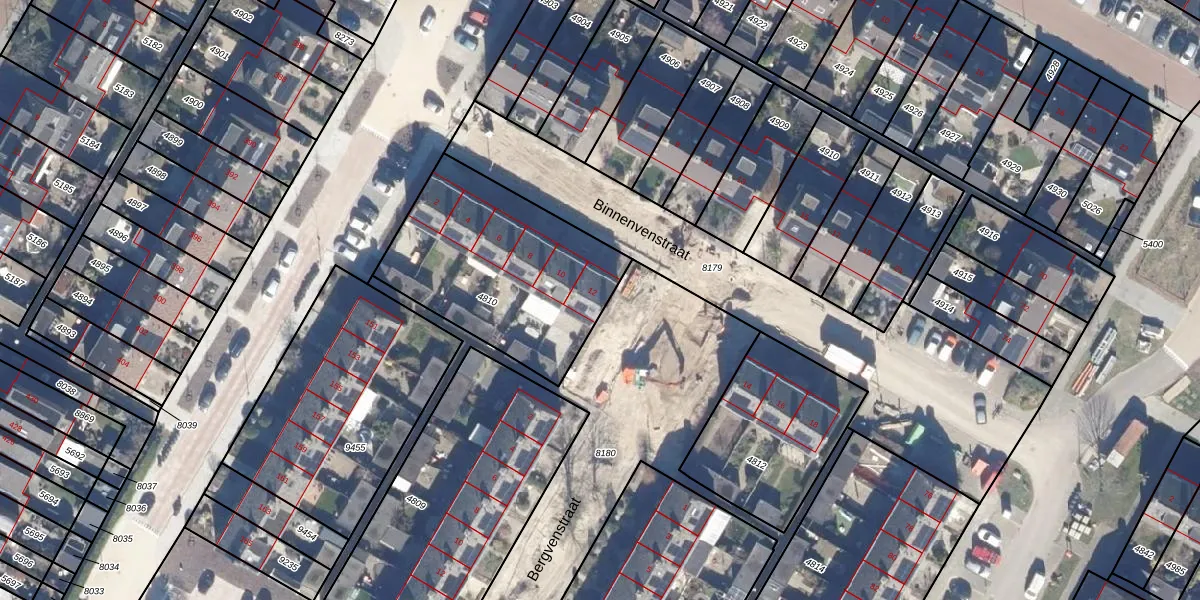 Het perceel waarop Binnenvenstraat 12 staat heeft een oppervlakte van 862 m². Dit is een groot perceel. De perceeloppervlakte wordt geregistreerd door het Kadaster. Gedetailleerde informatie over de maten van dit perceel kunt u vinden in het rapport Kadastrale kaart met maatvoering van Binnenvenstraat 12.