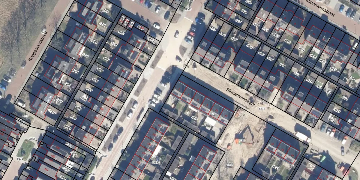 Het perceel waarop Binnenvenstraat 2 staat heeft een oppervlakte van 862 m². Dit is een groot perceel. De perceeloppervlakte wordt geregistreerd door het Kadaster. Gedetailleerde informatie over de maten van dit perceel kunt u vinden in het rapport Kadastrale kaart met maatvoering van Binnenvenstraat 2.
