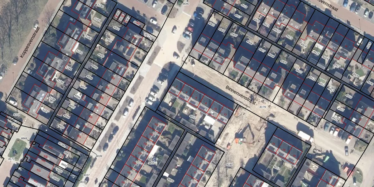 Het perceel waarop Binnenvenstraat 4 staat heeft een oppervlakte van 862 m². Dit is een groot perceel. De perceeloppervlakte wordt geregistreerd door het Kadaster. Gedetailleerde informatie over de maten van dit perceel kunt u vinden in het rapport Kadastrale kaart met maatvoering van Binnenvenstraat 4.