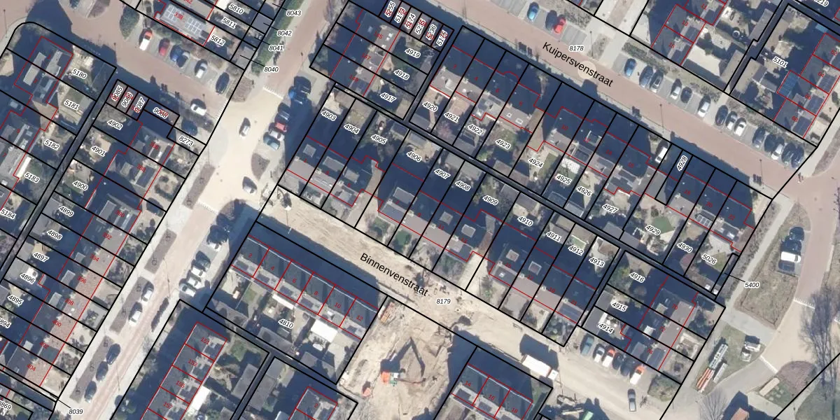 Gebruik de zoekbalk of klik op een perceel voor informatie over de adressen binnen dit perceel.