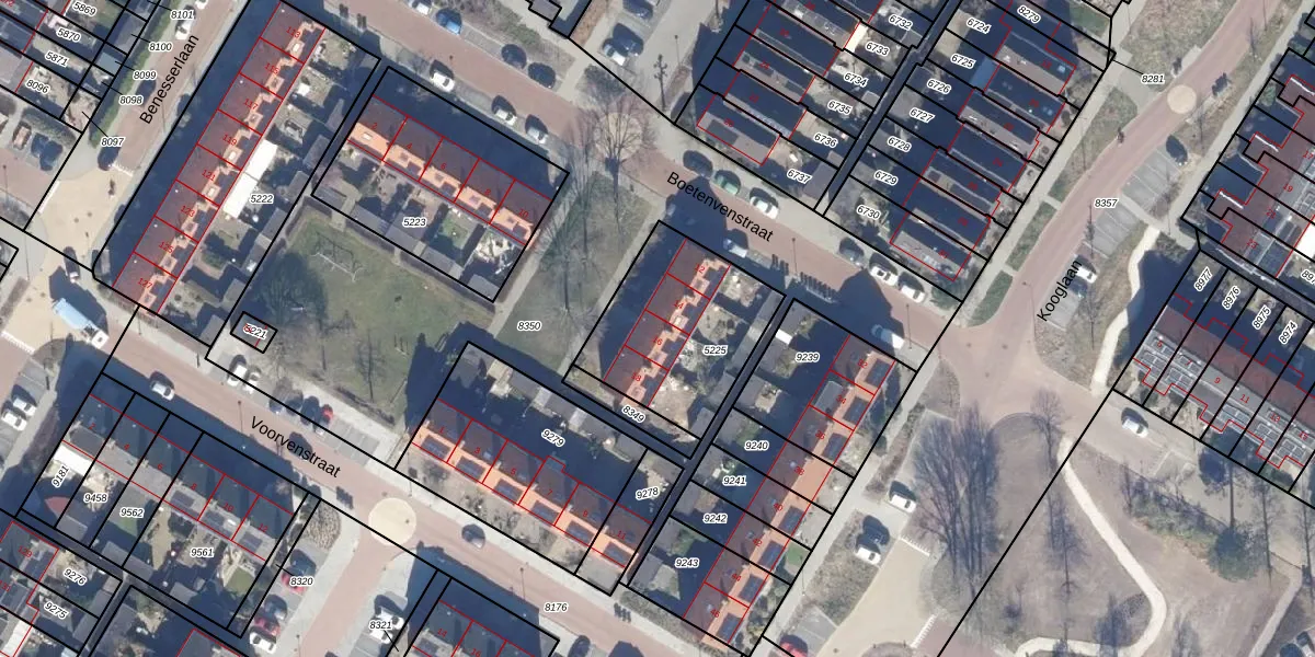 Het perceel waarop Boetenvenstraat 16 staat heeft een oppervlakte van 577 m². Dit is een groot perceel. De perceeloppervlakte wordt geregistreerd door het Kadaster. Gedetailleerde informatie over de maten van dit perceel kunt u vinden in het rapport Kadastrale kaart met maatvoering van Boetenvenstraat 16.