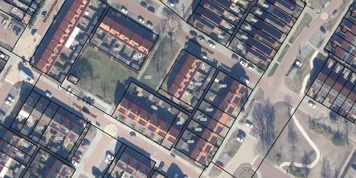 Het perceel waarop Boetenvenstraat 18 staat heeft een oppervlakte van 577 m². Dit is een groot perceel. De perceeloppervlakte wordt geregistreerd door het Kadaster. Gedetailleerde informatie over de maten van dit perceel kunt u vinden in het rapport Kadastrale kaart met maatvoering van Boetenvenstraat 18.