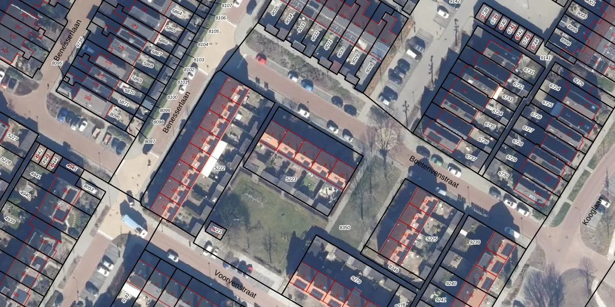 Het perceel waarop Boetenvenstraat 6 staat heeft een oppervlakte van 714 m². Dit is een groot perceel. De perceeloppervlakte wordt geregistreerd door het Kadaster. Gedetailleerde informatie over de maten van dit perceel kunt u vinden in het rapport Kadastrale kaart met maatvoering van Boetenvenstraat 6.