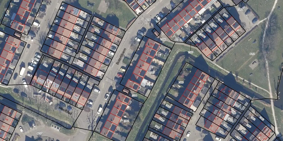 Het perceel waarop Boterbloem 26 staat heeft een oppervlakte van 840 m². Dit is een groot perceel. De perceeloppervlakte wordt geregistreerd door het Kadaster. Gedetailleerde informatie over de maten van dit perceel kunt u vinden in het rapport Kadastrale kaart met maatvoering van Boterbloem 26.