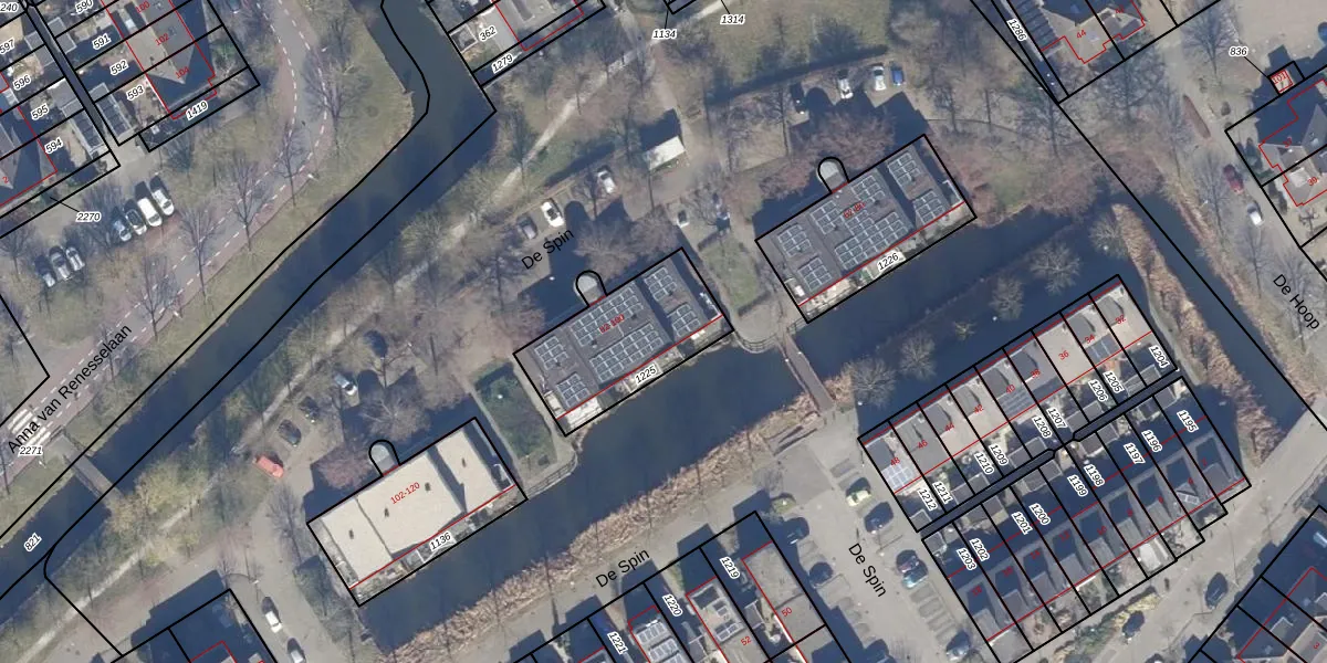 Het perceel waarop De Spin 96 staat heeft een oppervlakte van 461 m². Dit is een groot perceel. De perceeloppervlakte wordt geregistreerd door het Kadaster. Gedetailleerde informatie over de maten van dit perceel kunt u vinden in het rapport Kadastrale kaart met maatvoering van De Spin 96.