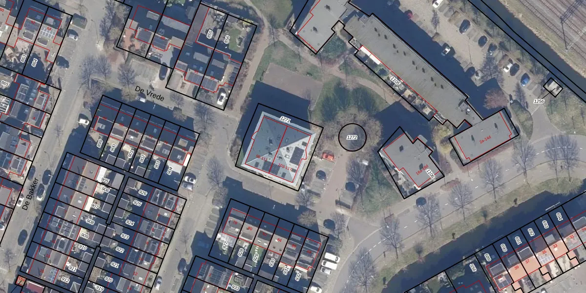 Het perceel waarop De Vrede 109 staat heeft een oppervlakte van 544 m². Dit is een groot perceel. De perceeloppervlakte wordt geregistreerd door het Kadaster. Gedetailleerde informatie over de maten van dit perceel kunt u vinden in het rapport Kadastrale kaart met maatvoering van De Vrede 109.