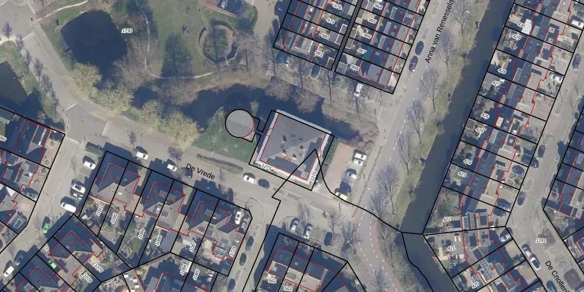 Het perceel waarop De Vrede 4 staat heeft een oppervlakte van 472 m². Dit is een groot perceel. De perceeloppervlakte wordt geregistreerd door het Kadaster. Gedetailleerde informatie over de maten van dit perceel kunt u vinden in het rapport Kadastrale kaart met maatvoering van De Vrede 4.