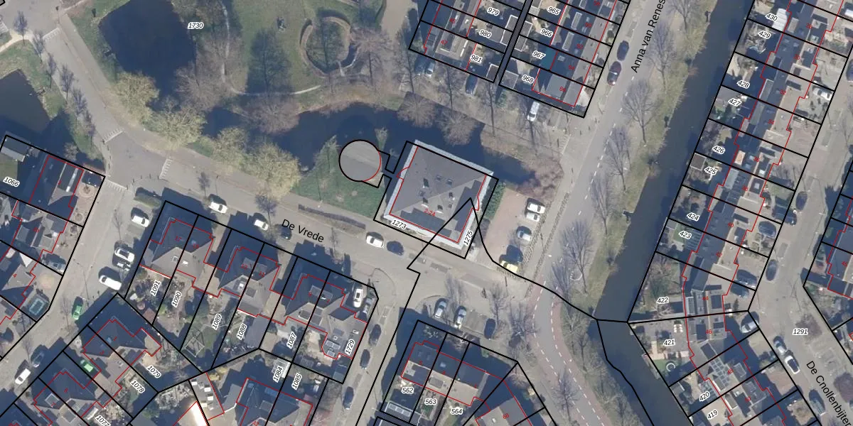 Het perceel waarop De Vrede 6 staat heeft een oppervlakte van 472 m². Dit is een groot perceel. De perceeloppervlakte wordt geregistreerd door het Kadaster. Gedetailleerde informatie over de maten van dit perceel kunt u vinden in het rapport Kadastrale kaart met maatvoering van De Vrede 6.