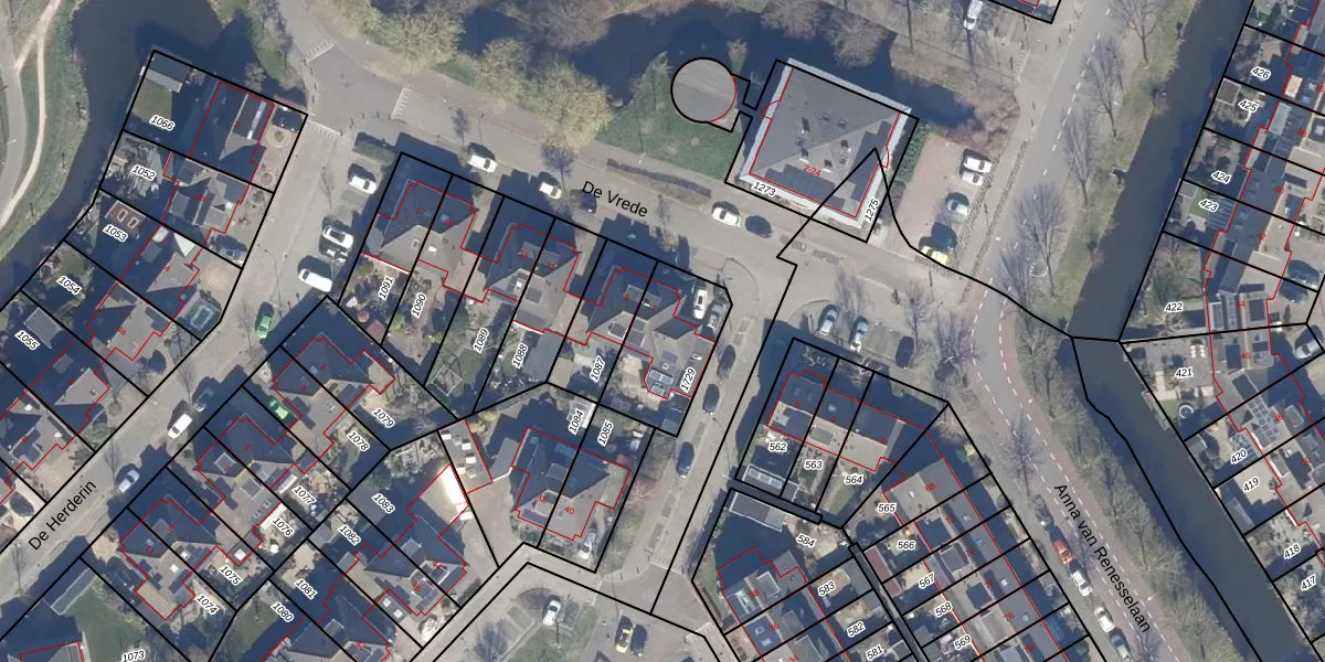 Het perceel waarop De Vrede 7 staat heeft een oppervlakte van 300 m². Dit is een groot perceel. De perceeloppervlakte wordt geregistreerd door het Kadaster. Gedetailleerde informatie over de maten van dit perceel kunt u vinden in het rapport Kadastrale kaart met maatvoering van De Vrede 7.