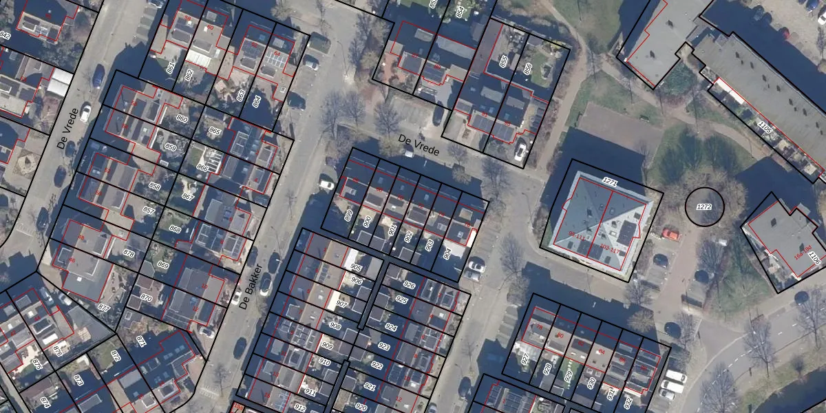 Gebruik de zoekbalk of klik op een perceel voor informatie over de adressen binnen dit perceel.