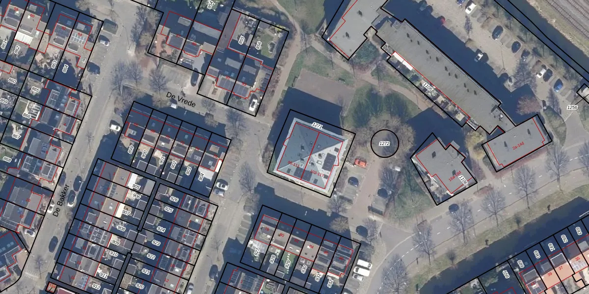 Het perceel waarop De Vrede 97 staat heeft een oppervlakte van 544 m². Dit is een groot perceel. De perceeloppervlakte wordt geregistreerd door het Kadaster. Gedetailleerde informatie over de maten van dit perceel kunt u vinden in het rapport Kadastrale kaart met maatvoering van De Vrede 97.