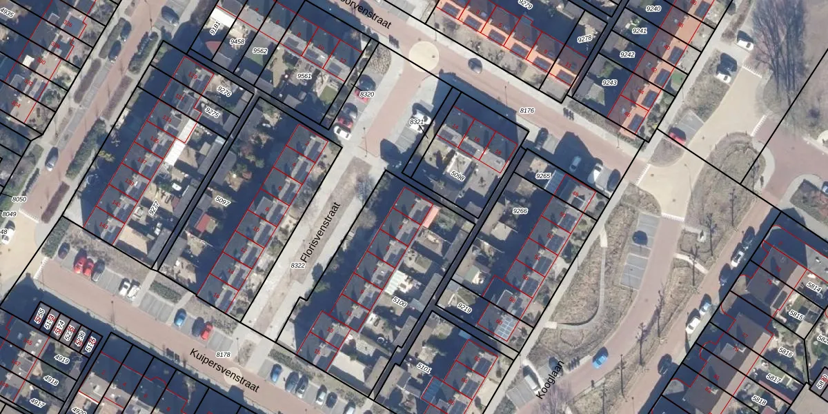 Het perceel waarop Florisvenstraat 1 staat heeft een oppervlakte van 1257 m². Dit is een zeer groot perceel. De perceeloppervlakte wordt geregistreerd door het Kadaster. Gedetailleerde informatie over de maten van dit perceel kunt u vinden in het rapport Kadastrale kaart met maatvoering van Florisvenstraat 1.