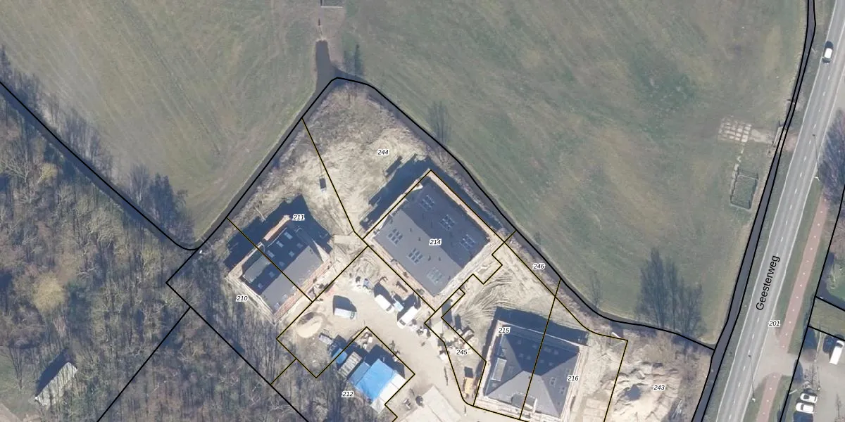 Het perceel waarop Geesterweg 2-n staat heeft een oppervlakte van 588 m². Dit is een groot perceel. De perceeloppervlakte wordt geregistreerd door het Kadaster. Gedetailleerde informatie over de maten van dit perceel kunt u vinden in het rapport Kadastrale kaart met maatvoering van Geesterweg 2-n.