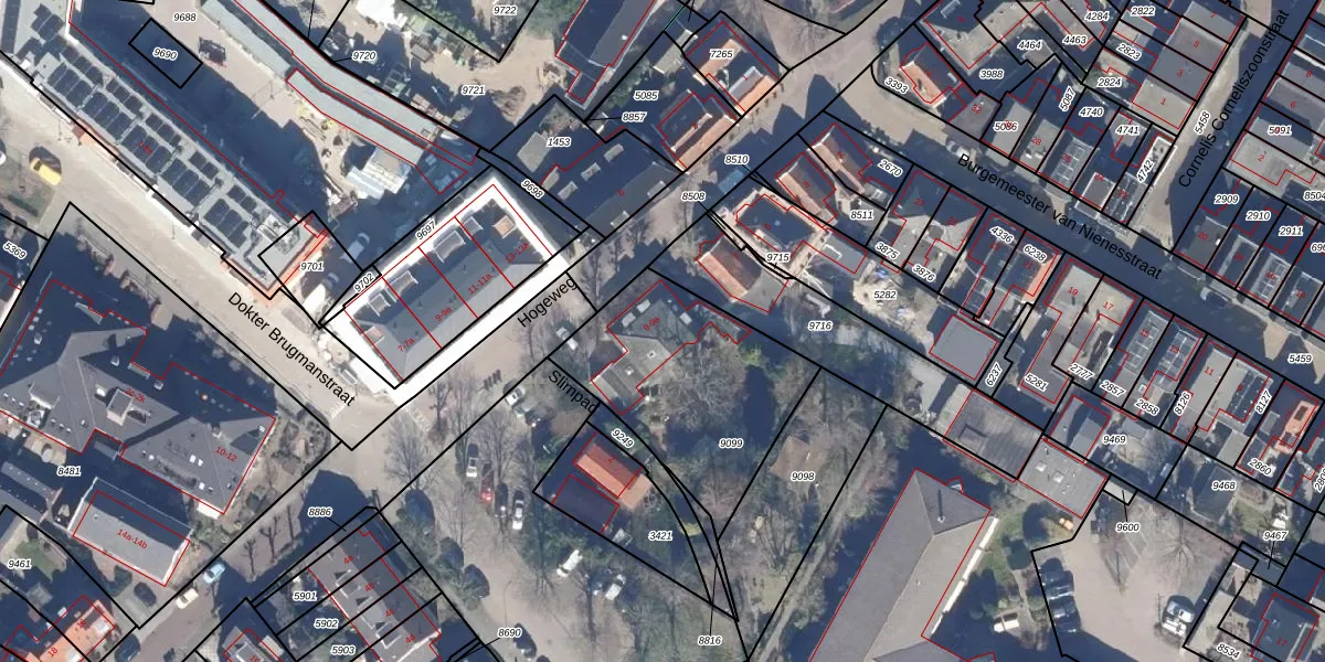 Het perceel waarop Hogeweg 9 staat heeft een oppervlakte van 810 m². Dit is een groot perceel. De perceeloppervlakte wordt geregistreerd door het Kadaster. Gedetailleerde informatie over de maten van dit perceel kunt u vinden in het rapport Kadastrale kaart met maatvoering van Hogeweg 9.