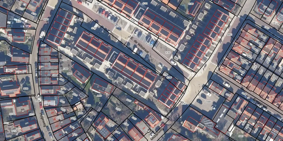Het perceel waarop J.E. de Witstraat 3 staat heeft een oppervlakte van 2472 m². Dit is een zeer groot perceel. De perceeloppervlakte wordt geregistreerd door het Kadaster. Gedetailleerde informatie over de maten van dit perceel kunt u vinden in het rapport Kadastrale kaart met maatvoering van J.E. de Witstraat 3.
