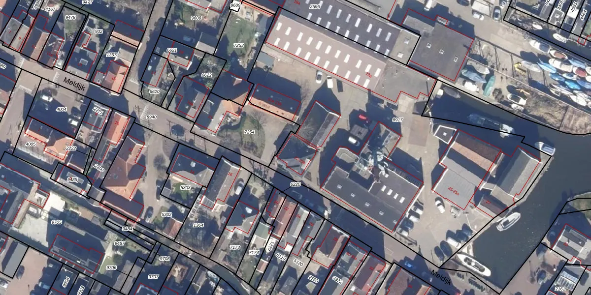 Het perceel waarop Meldijk 23 staat heeft een oppervlakte van 4082 m². Dit is een zeer groot perceel. De perceeloppervlakte wordt geregistreerd door het Kadaster. Gedetailleerde informatie over de maten van dit perceel kunt u vinden in het rapport Kadastrale kaart met maatvoering van Meldijk 23.