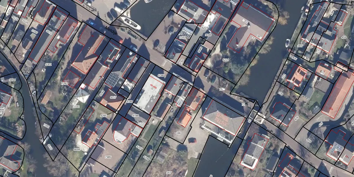 Het perceel waarop Meldijk 48 staat heeft een oppervlakte van 525 m². Dit is een groot perceel. De perceeloppervlakte wordt geregistreerd door het Kadaster. Gedetailleerde informatie over de maten van dit perceel kunt u vinden in het rapport Kadastrale kaart met maatvoering van Meldijk 48.