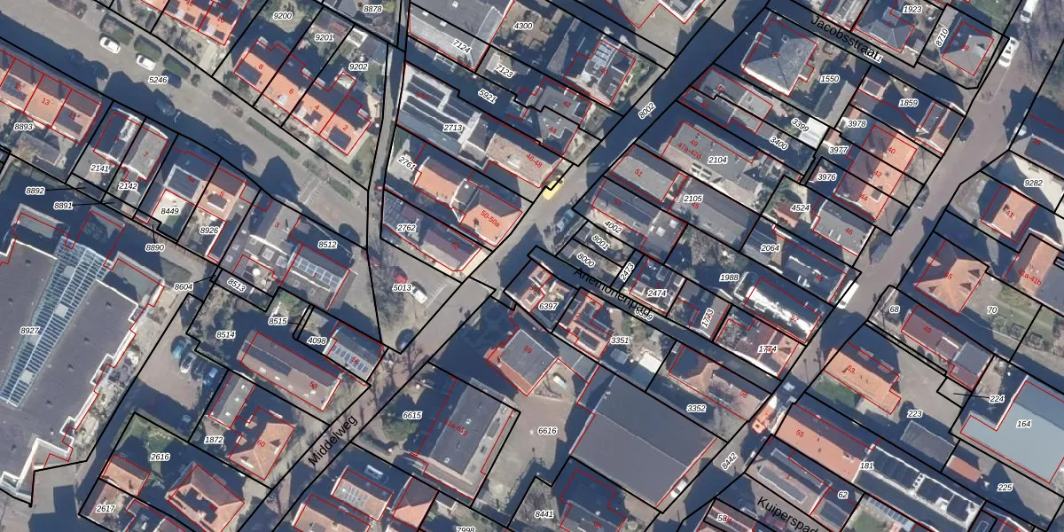 Het perceel waarop Middelweg 57 staat heeft een oppervlakte van 95 m². Dit is een klein perceel. De perceeloppervlakte wordt geregistreerd door het Kadaster. Gedetailleerde informatie over de maten van dit perceel kunt u vinden in het rapport Kadastrale kaart met maatvoering van Middelweg 57.