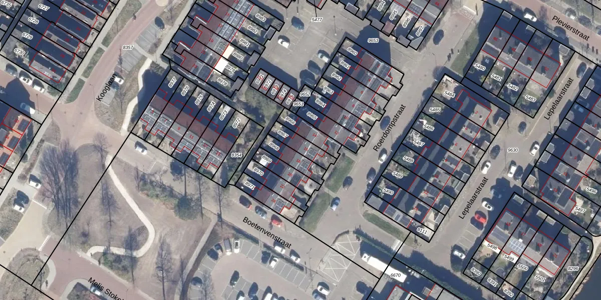 Gebruik de zoekbalk of klik op een perceel voor informatie over de adressen binnen dit perceel.