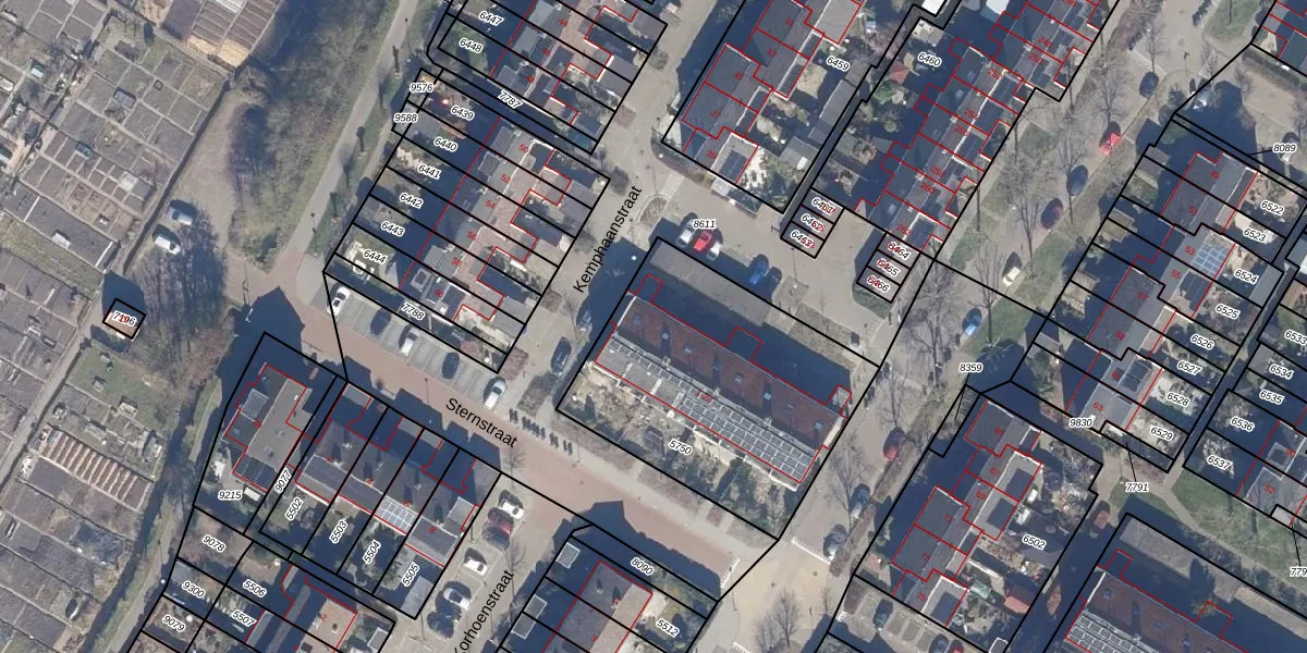 Het perceel waarop Sternstraat 1 staat heeft een oppervlakte van 1210 m². Dit is een zeer groot perceel. De perceeloppervlakte wordt geregistreerd door het Kadaster. Gedetailleerde informatie over de maten van dit perceel kunt u vinden in het rapport Kadastrale kaart met maatvoering van Sternstraat 1.