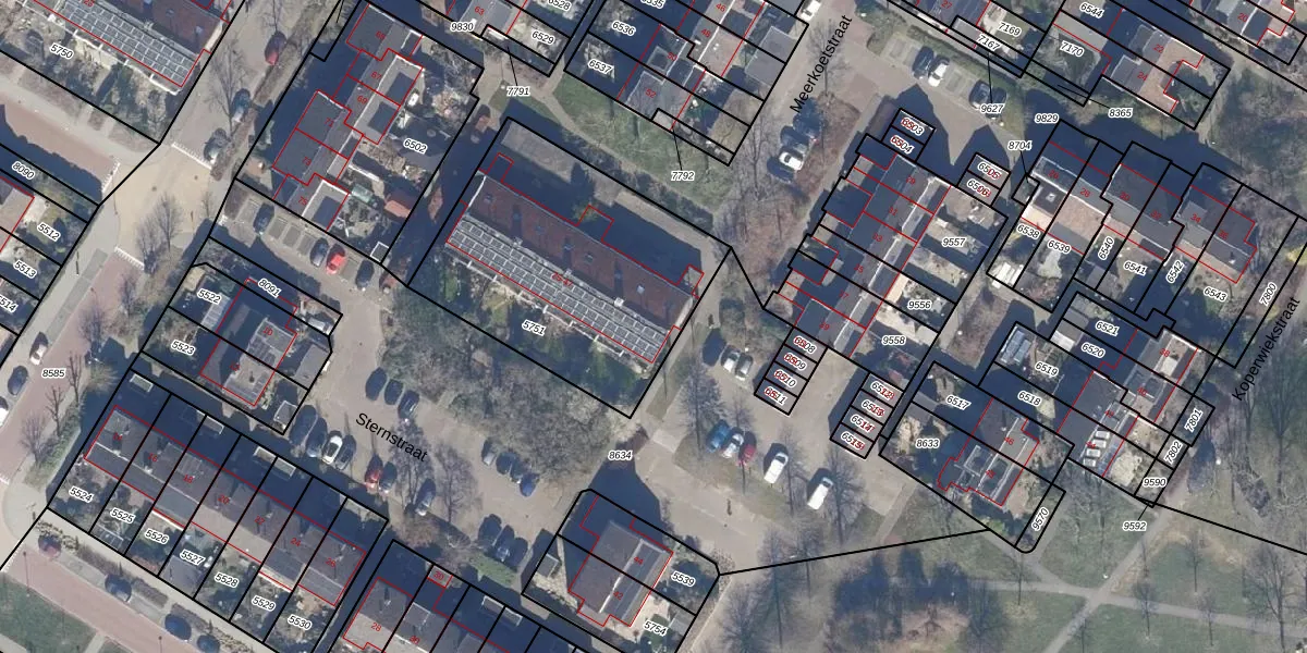 Het perceel waarop Sternstraat 45 staat heeft een oppervlakte van 1202 m². Dit is een zeer groot perceel. De perceeloppervlakte wordt geregistreerd door het Kadaster. Gedetailleerde informatie over de maten van dit perceel kunt u vinden in het rapport Kadastrale kaart met maatvoering van Sternstraat 45.