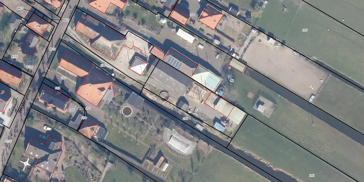 Het perceel waarop Westergeest 21-a staat heeft een oppervlakte van 1000 m². Dit is een zeer groot perceel. De perceeloppervlakte wordt geregistreerd door het Kadaster. Gedetailleerde informatie over de maten van dit perceel kunt u vinden in het rapport Kadastrale kaart met maatvoering van Westergeest 21-a.