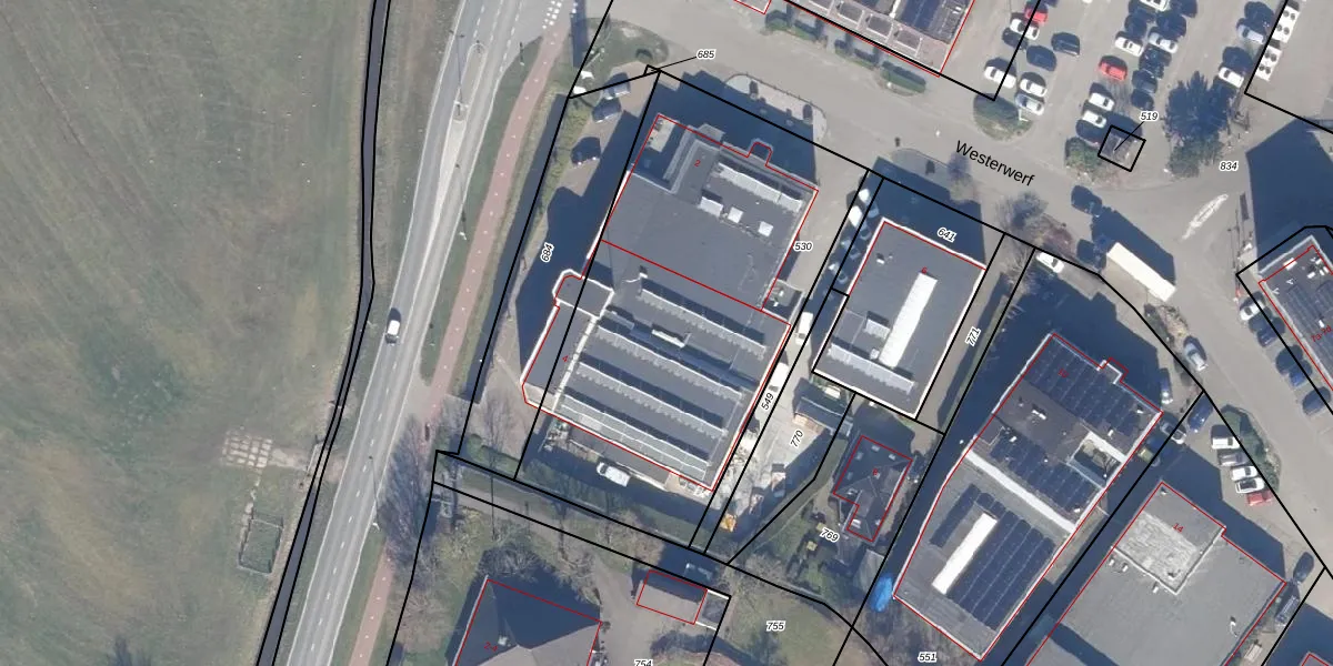 Het perceel waarop Westerwerf 4 staat heeft een oppervlakte van 2010 m². Dit is een zeer groot perceel. De perceeloppervlakte wordt geregistreerd door het Kadaster. Gedetailleerde informatie over de maten van dit perceel kunt u vinden in het rapport Kadastrale kaart met maatvoering van Westerwerf 4.