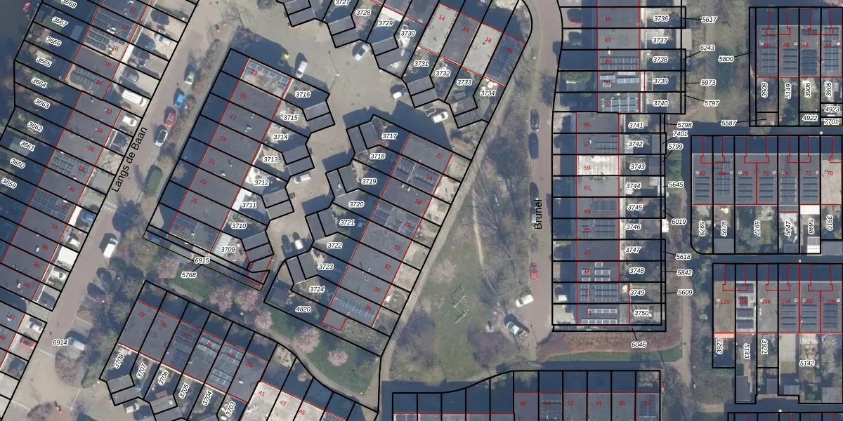 Het perceel waarop Brunel 26 staat heeft een oppervlakte van 156 m². Dit is een middelgroot perceel. De perceeloppervlakte wordt geregistreerd door het Kadaster. Gedetailleerde informatie over de maten van dit perceel kunt u vinden in het rapport Kadastrale kaart met maatvoering van Brunel 26.