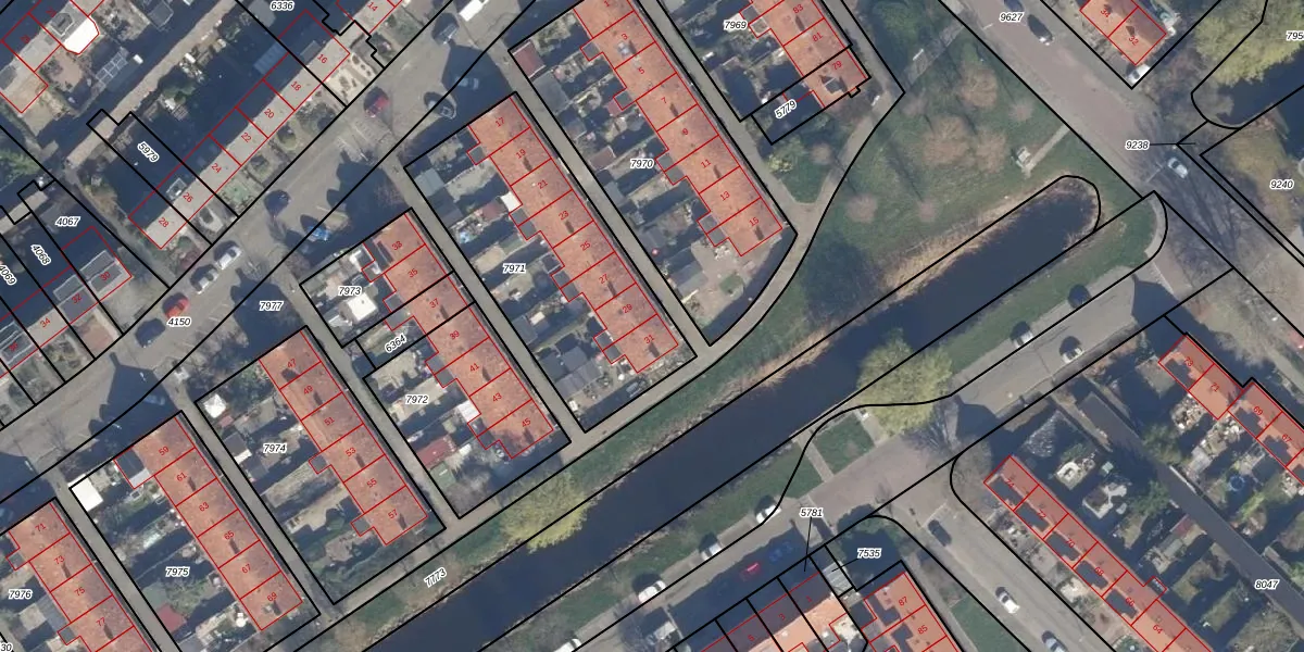 Het perceel waarop het adres ligt is UHN00-B-7971. De afkorting 'UHN00' staat voor kadastrale gemeente Uithoorn. Het perceel is 1021 m² groot. Dat is kleiner dan de gemiddelde perceeloppervlakte in Uithoorn, dat op 1535,35 m² ligt. Het grootste perceel in de kadastrale gemeente is 22,5 ha. Het kleinste perceel heeft een oppervlakte van 0 m². Op het perceel liggen in totaal 8 adressen. De huidige grenzen van het perceel zijn digitaal in de Basisregistratie Kadaster (BRK) geregistreerd op 17-05-2000.