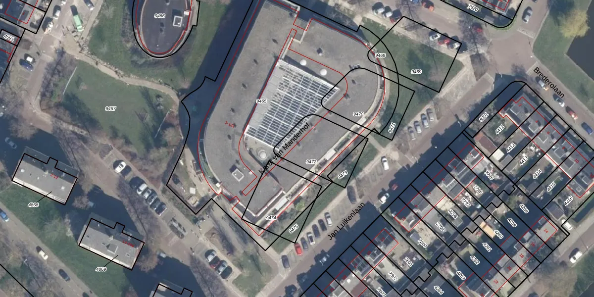 Het perceel waarop Karel van Manderhof 21 staat heeft een oppervlakte van 372 m². Dit is een groot perceel. De perceeloppervlakte wordt geregistreerd door het Kadaster. Gedetailleerde informatie over de maten van dit perceel kunt u vinden in het rapport Kadastrale kaart met maatvoering van Karel van Manderhof 21.
