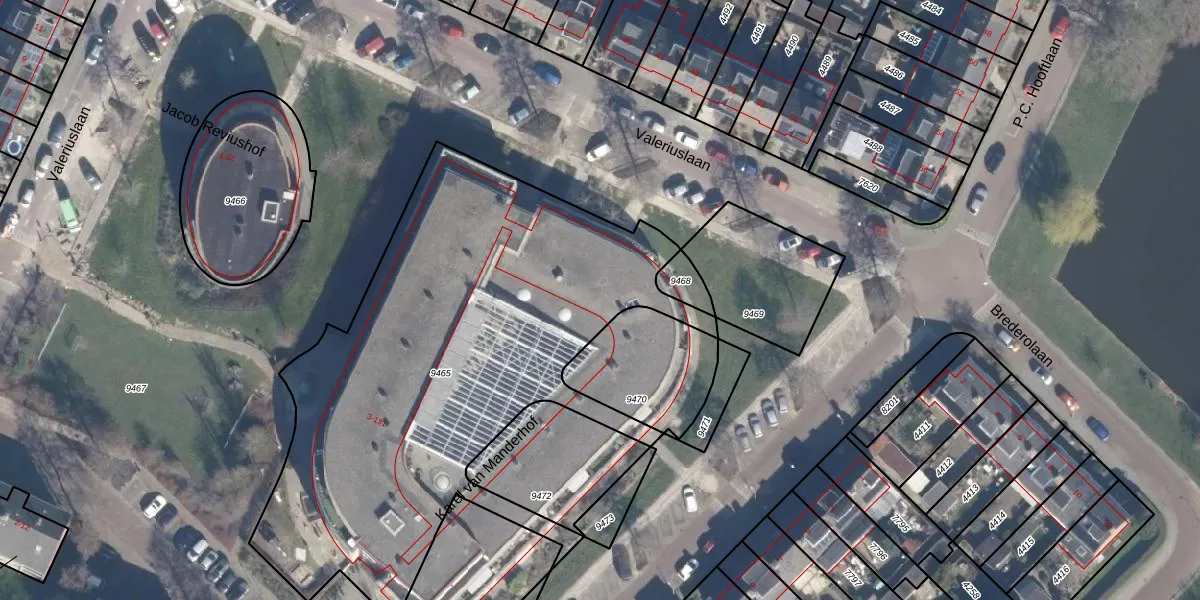 Het perceel waarop Karel van Manderhof 53 staat heeft een oppervlakte van 2805 m². Dit is een zeer groot perceel. De perceeloppervlakte wordt geregistreerd door het Kadaster. Gedetailleerde informatie over de maten van dit perceel kunt u vinden in het rapport Kadastrale kaart met maatvoering van Karel van Manderhof 53.