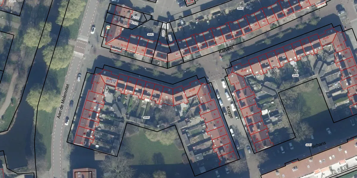 Het perceel waarop Karveel 51 staat heeft een oppervlakte van 3327 m². Dit is een zeer groot perceel. De perceeloppervlakte wordt geregistreerd door het Kadaster. Gedetailleerde informatie over de maten van dit perceel kunt u vinden in het rapport Kadastrale kaart met maatvoering van Karveel 51.