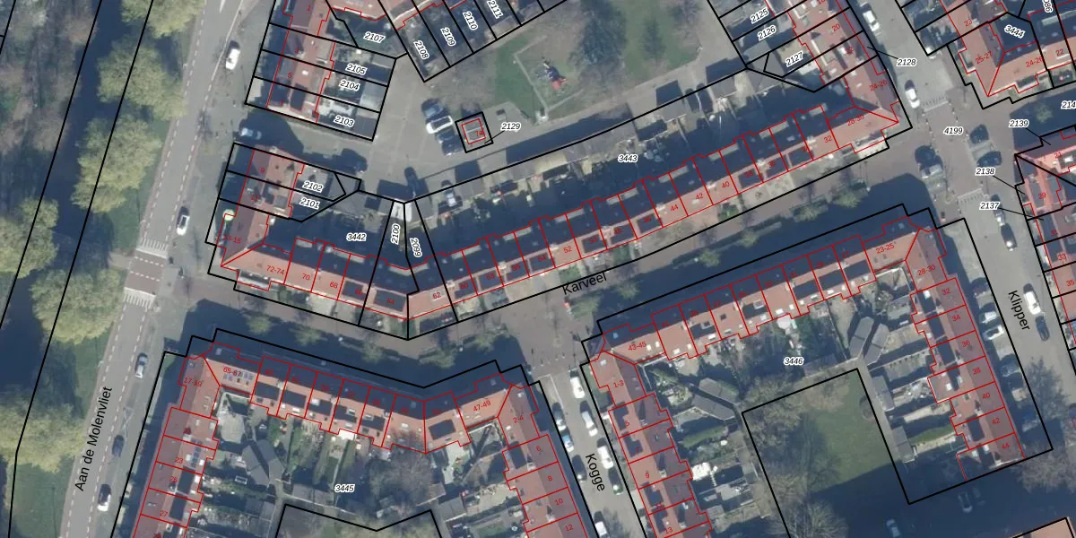 Het perceel waarop Karveel 54 staat heeft een oppervlakte van 2027 m². Dit is een zeer groot perceel. De perceeloppervlakte wordt geregistreerd door het Kadaster. Gedetailleerde informatie over de maten van dit perceel kunt u vinden in het rapport Kadastrale kaart met maatvoering van Karveel 54.
